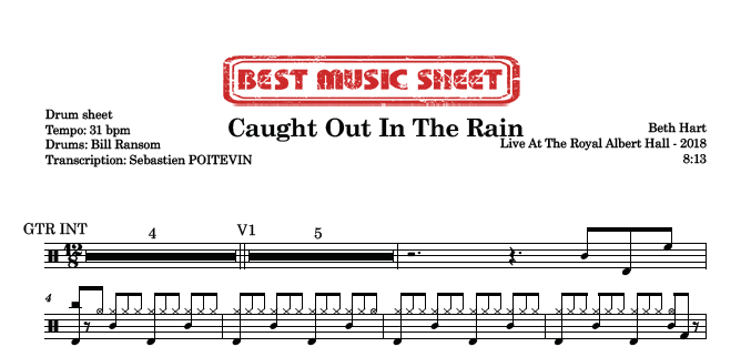 Be the first to review “Bundle Drum Sheet & Drumless – Beth Hart – Caught Out In The Rain Live”