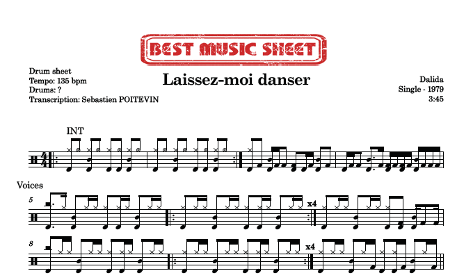 Be the first to review “Bundle Drum Sheet & Drumless – Dalida – Laissez-moi Danser”