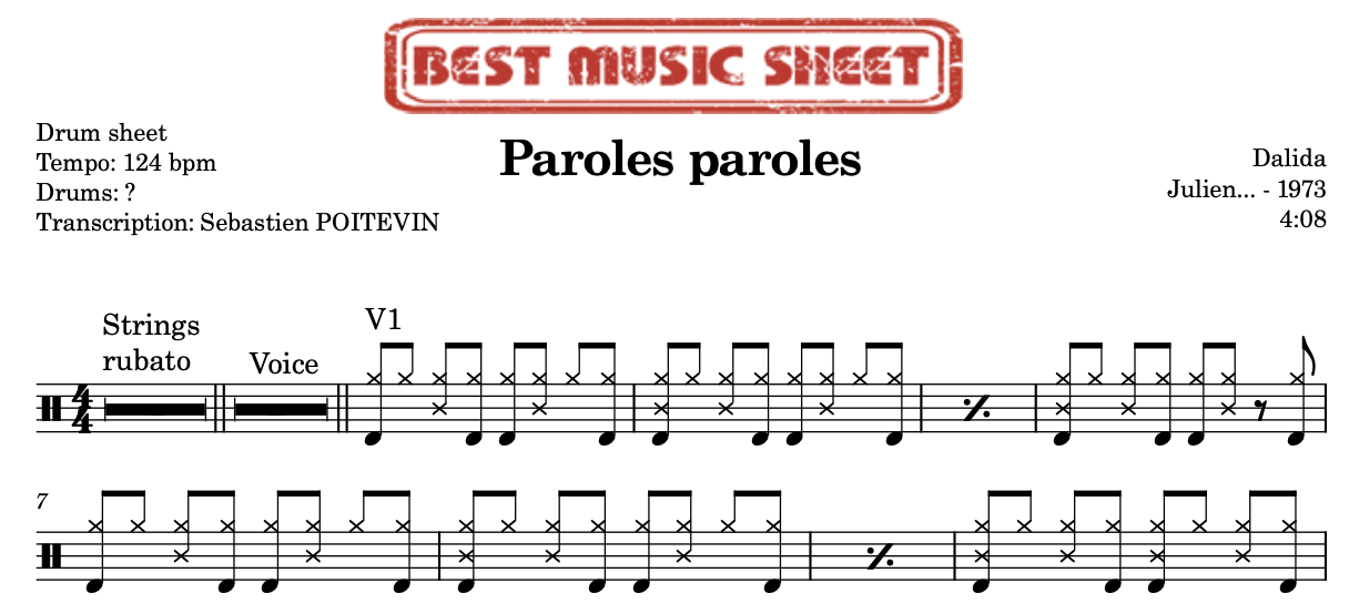 Be the first to review “Bundle Drum Sheet & Drumless – Dalida – Paroles, paroles”