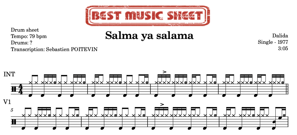 Be the first to review “Bundle Drum Sheet & Drumless – Dalida – Salma Ya Salama”