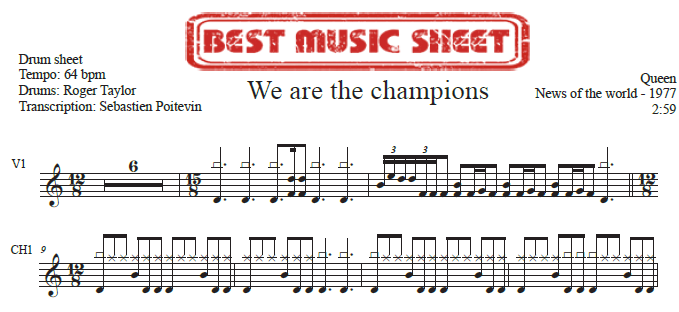 Be the first to review “Bundle Drum Sheet & Drumless – Queen – We Are The Champions”