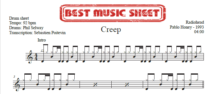 Be the first to review “Bundle Drum Sheet & Drumless – Radiohead – Creep”